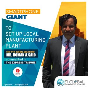 SI Global Solutions CEO Noman A. announces local manufacturing plant for smartphones, featured in The Express Tribune.