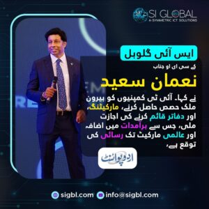 ایس آئی گلوبل کے سی ای او جناب نعمان سعید نے کہا، آئی ٹی کمپنیوں کو بیرون ملک حصص حاصل کرنے، مارکیٹنگ، اور دفاتر قائم کرنے کی اجازت ملی، جس سے برآمدات میں اضافہ اور عالمی مارکیٹ تک رسائی کی توقع ہے۔